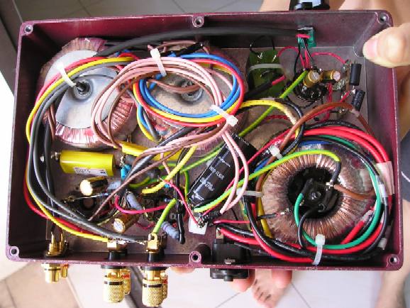 The background is not as pitch dark as my reference system but then I economized so much on the power supply, so this could explain it. There is some channel crosstalk. It could be due to so many reasons I haven't even started figuring out. Look at the wiring and tell me could there be crosstalk?! I think I'll snip the wires after I'm done with modding it.